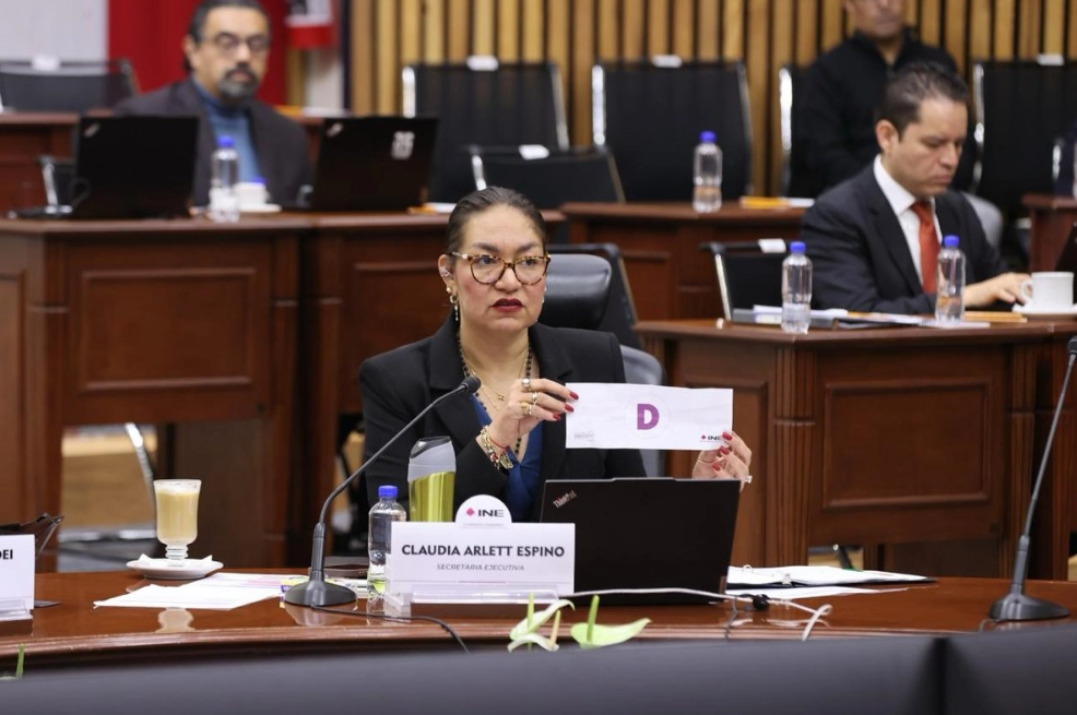 El sorteo correspondiente se llevó a cabo este jueves en la sala de sesiones del consejo general, conforme a lo establecido en la Ley General de Instituciones y Procedimientos Electorales; durante el acto, Claudia Verdín, empleada del INE, fue la encargada de extraer de manera aleatoria la letra D de la cápsula.