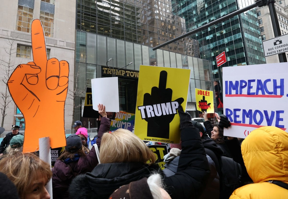 Los manifestantes llevaron carteles que denunciaban a Trump como “TRAIDOR” y aspirante a dictador, y una pancarta de gran tamaño exigía su destitución. Aunque el Departamento de Policía de Nueva York confirmó que “varias personas” fueron arrestadas, no ofreció detalles sobre el número ni las acusaciones.